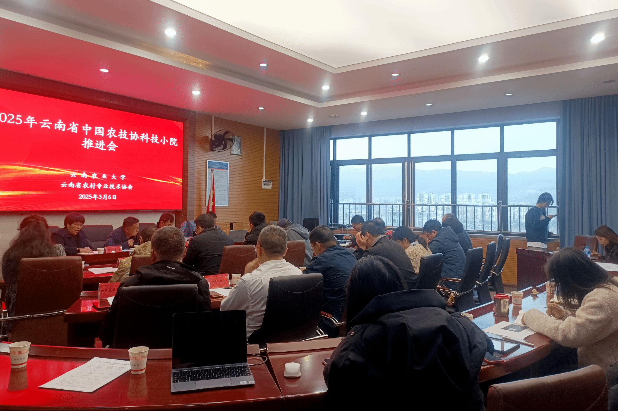 本站消息 3月6日,2025年云南省中国农技协科技小院建设推进会在学校召开。省科协少数民族科普工作队(省农技协)队长贾兴勇、昆明市科协副主席何文林、学校研究生处和14家中国农技协科技小院首席专家等30人参加,省高原特色农业产业研究院专家服务处副处长、省农技协副理事长杜发春主持会议。