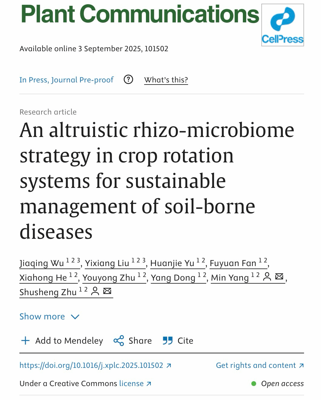 plant commun. |“种地活雷锋”大蒜背后的微生物奥秘:学校朱书生教授团队解析作物根际微生物利他效应介导的土传病害可持续管理策略