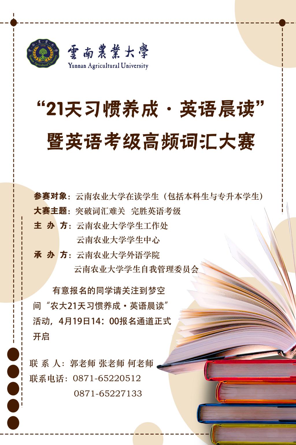 云南农业大学“21天习惯养成·英语晨读”暨英语考级高频词汇大赛