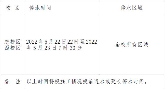 接昆明通用水务自来水有限公司通知,因沣源路和7204公路市政供水主管维修,我校东、西校区所有区域将受到停水影响。停水时间:2022年5月22日22时至2022年5月23日7时30分。请各学院、部门、住户及师生员工提前做好用水应急储备。