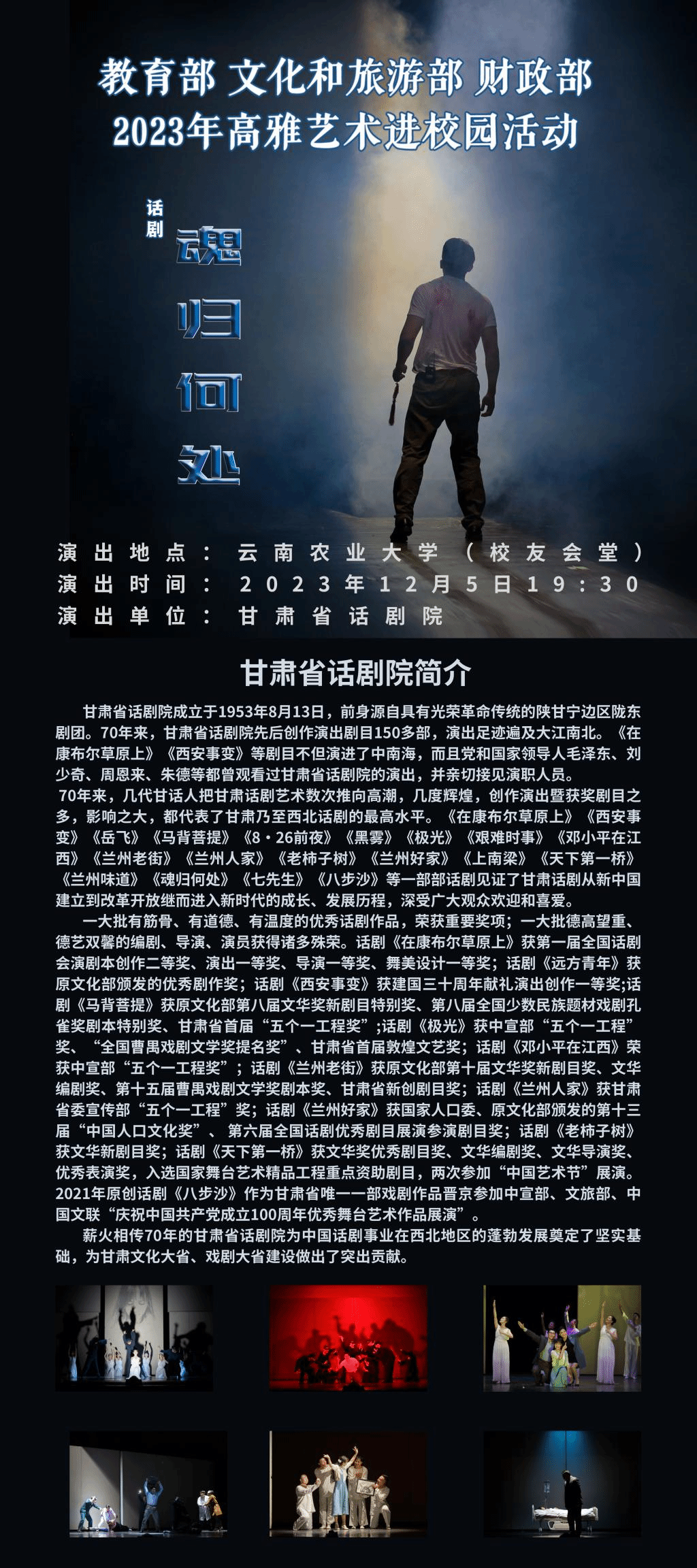 2023 年高雅艺术进校园活动甘肃省话剧院话剧《魂归何处》走进云南农业大学专场演出