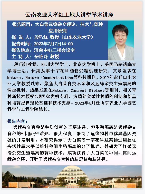 7月7日红土地大讲堂:大白菜远缘杂交理论、技术与育种应用研究-凯发真人