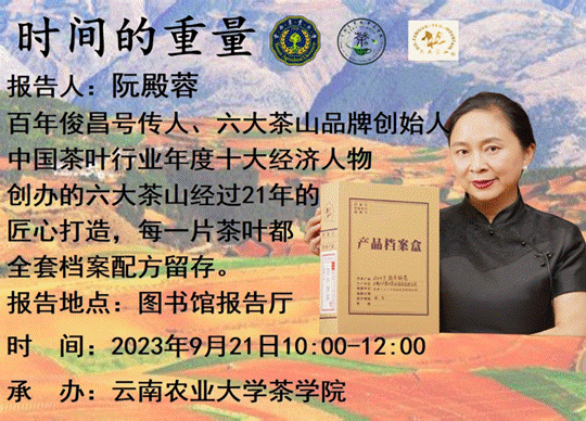 阮殿蓉,原国营勐海茶厂厂长,在职期间将生产结构调整为以普洱茶生产为主,将国有勐海茶厂带入普洱茶时代。普洱茶国家标准参与制订者、档案普洱茶的开创者,全国茶叶标准化技术委员会普洱茶工作组技术委员会委员。创办的六大茶山经过21年的匠心打造,每一片茶叶都全套档案配方留存,带领公司成为全国首批质量保荐溯源企业、全国知名普洱茶生产示范企业,获得云南10大名品、云南省老字号荣誉称号。