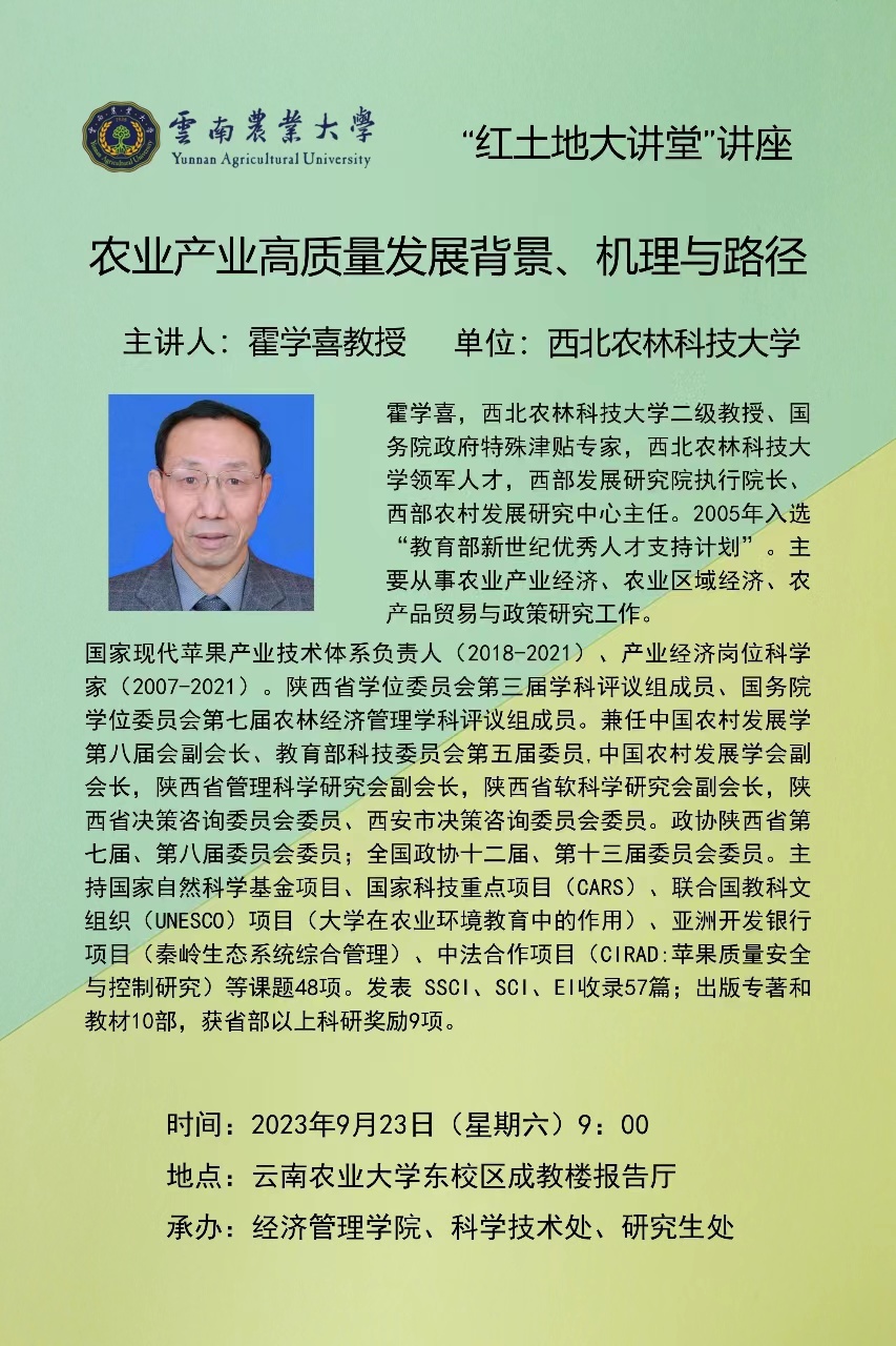 9月23日“红土地”大讲堂:农业产业高质量发展背景、机理与路径