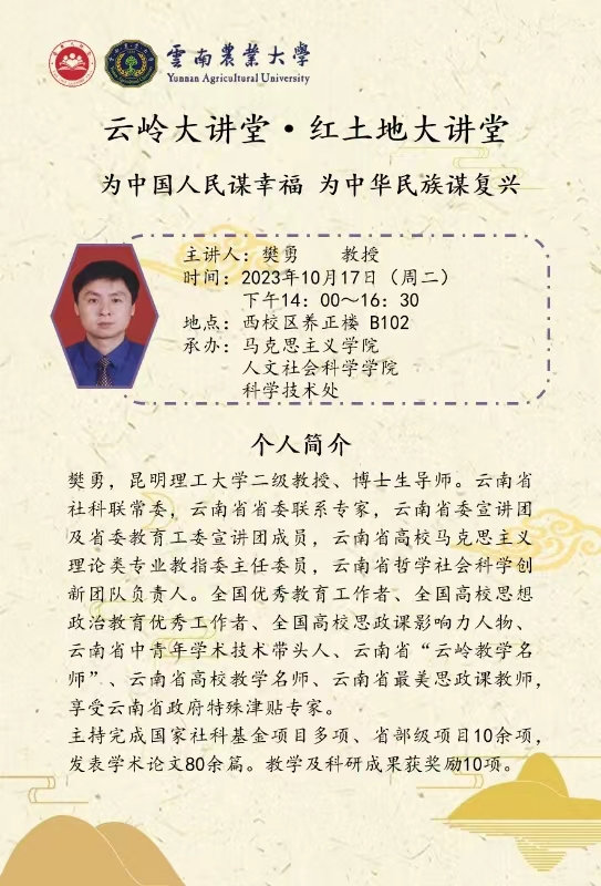 10月17日云岭大讲堂·红土地大讲堂:为中国人民谋幸福 为中华民族谋复兴-凯发真人