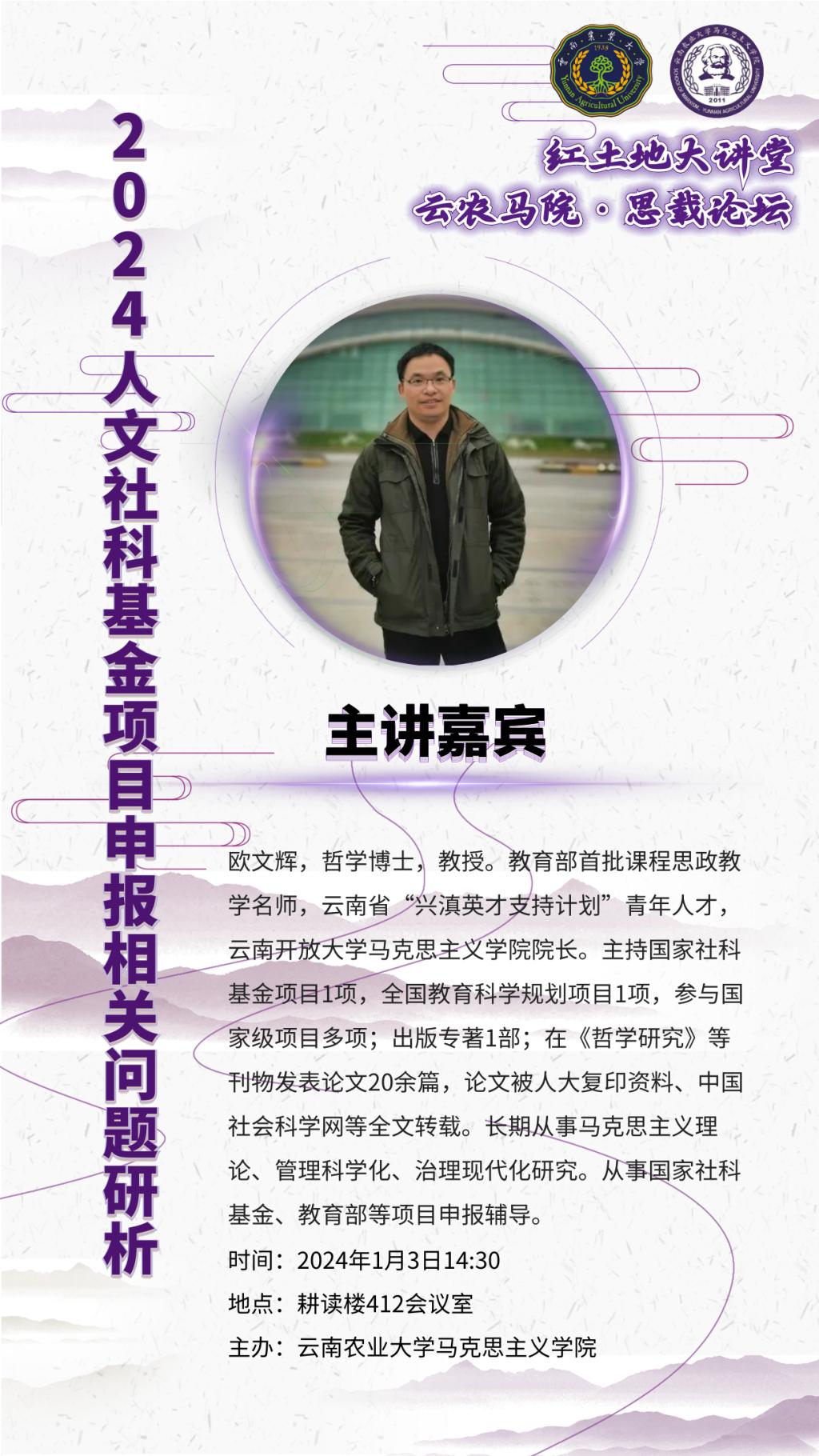1月3日“红土地”大讲堂:2024人文社科基金项目申报相关问题研析-凯发真人