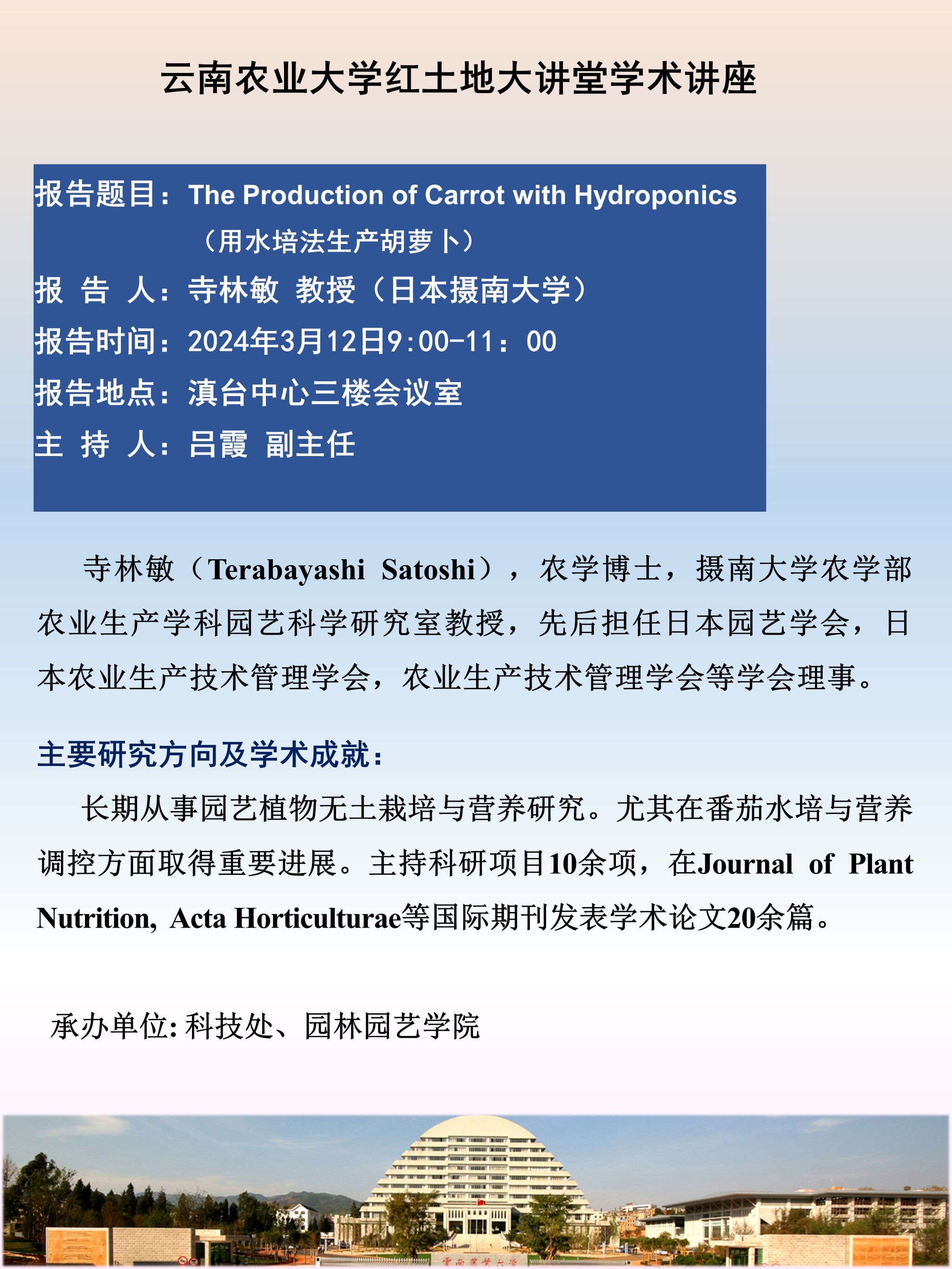 3月12日“红土地”大讲堂:the production of carrot with hydroponics(用水培法生产胡萝卜)
