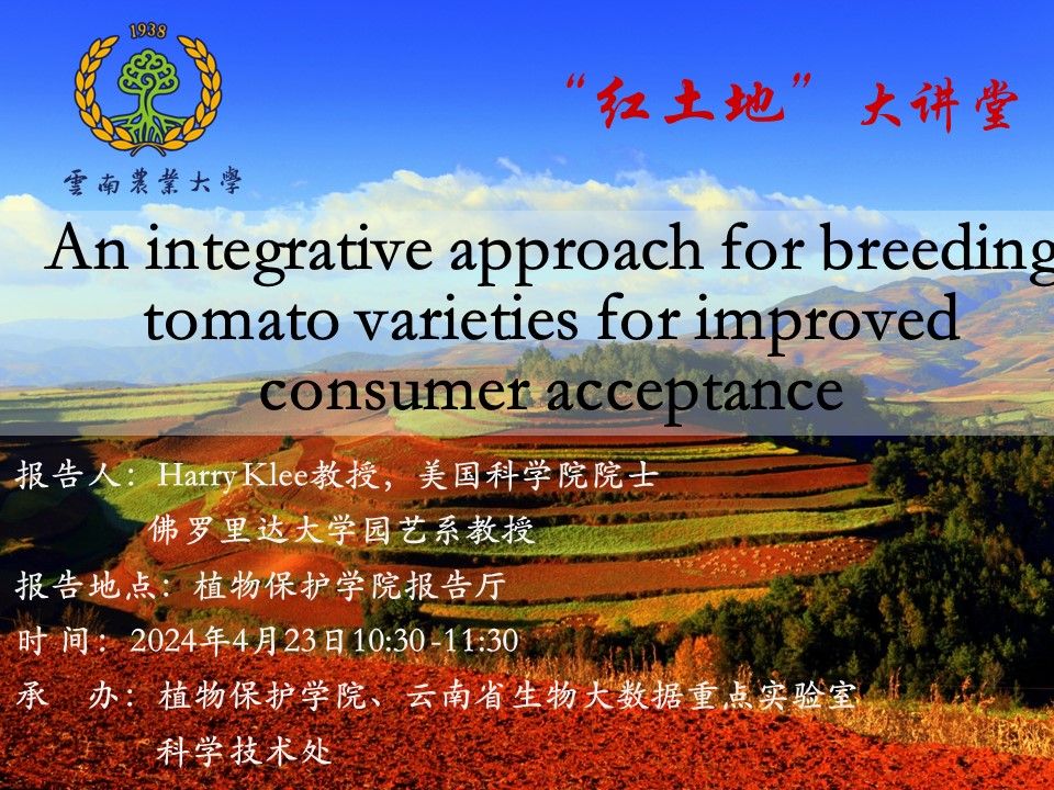 4月23日“红土地”大讲堂:an integrative approach for breeding tomato varieties for improved consumer acceptance