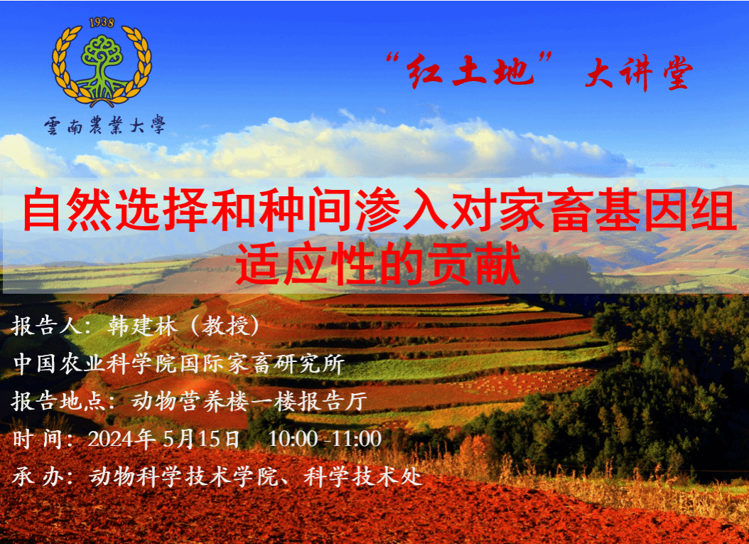 5月15日“红土地”大讲堂:自然选择和种间渗入对家畜基因组适应性的贡献