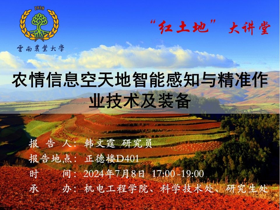 7月8日“红土地”大讲堂:农情信息空天地智能感知与精准作业技术及装备