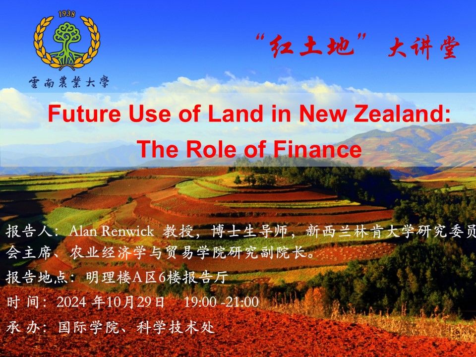 10月29日“红土地”大讲堂:future use of land in new zealand:the role of finance