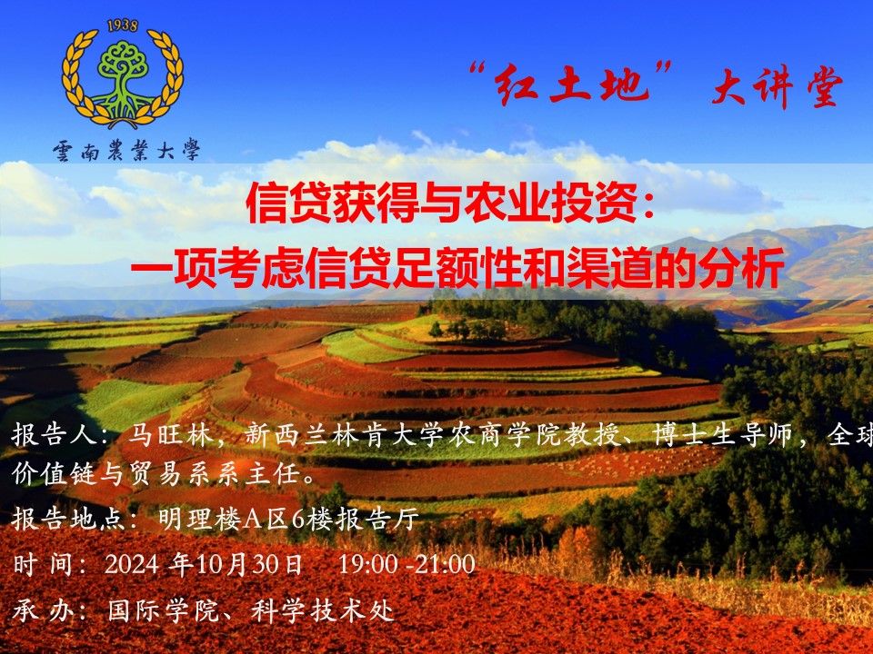 10月30日“红土地”大讲堂:信贷获得与农业投资:一项考虑信贷足额性和渠道的分析