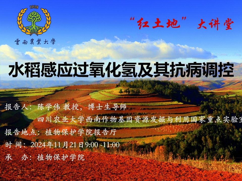11月21日“红土地”大讲堂:水稻感应过氧化氢及其抗病调控-凯发真人