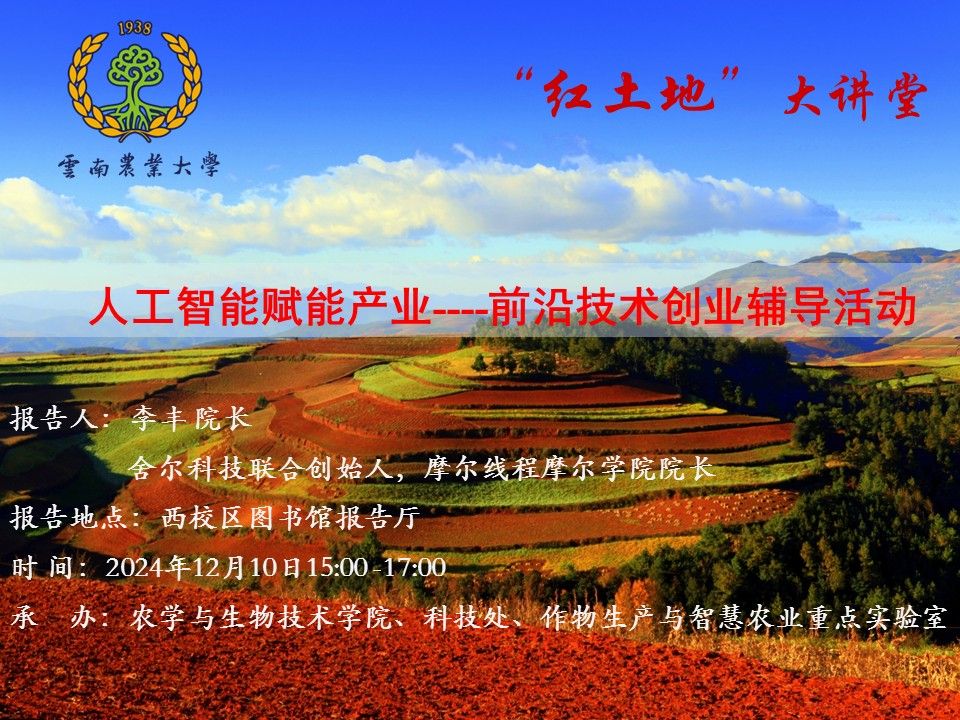 12月10日“红土地”大讲堂:人工智能赋能产业——前沿技术创业辅导活动