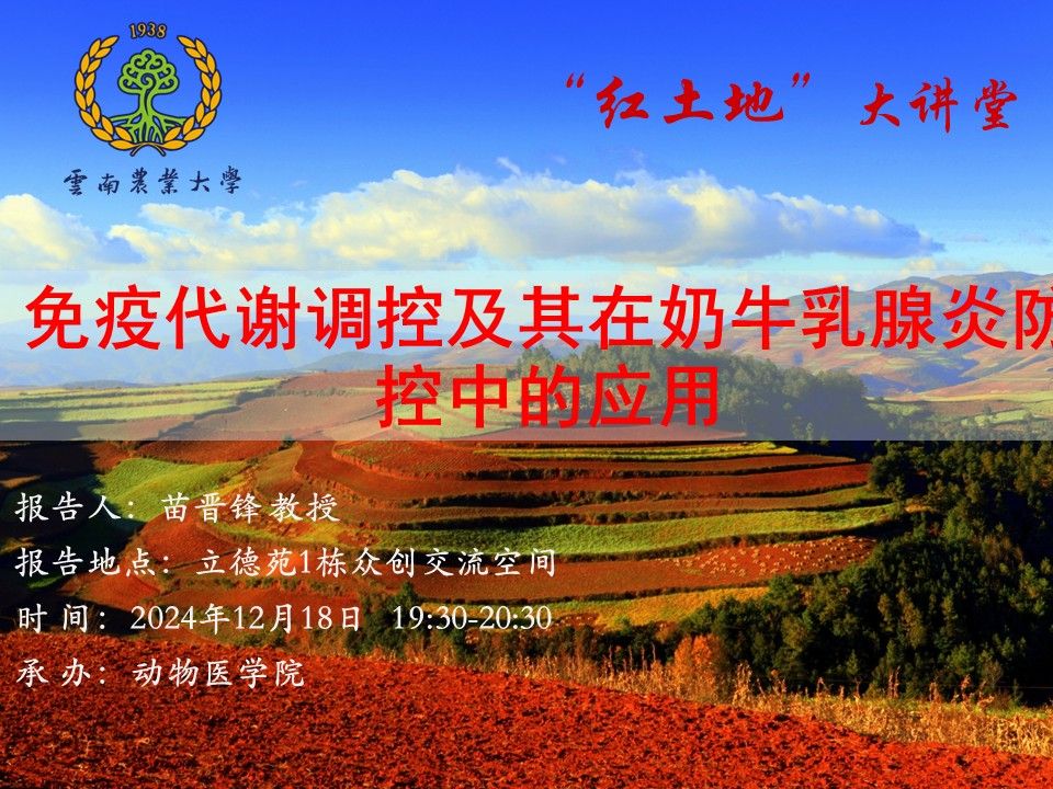 12月18日“红土地”大讲堂:免疫代谢调控及其在奶牛乳腺炎防控中的应用