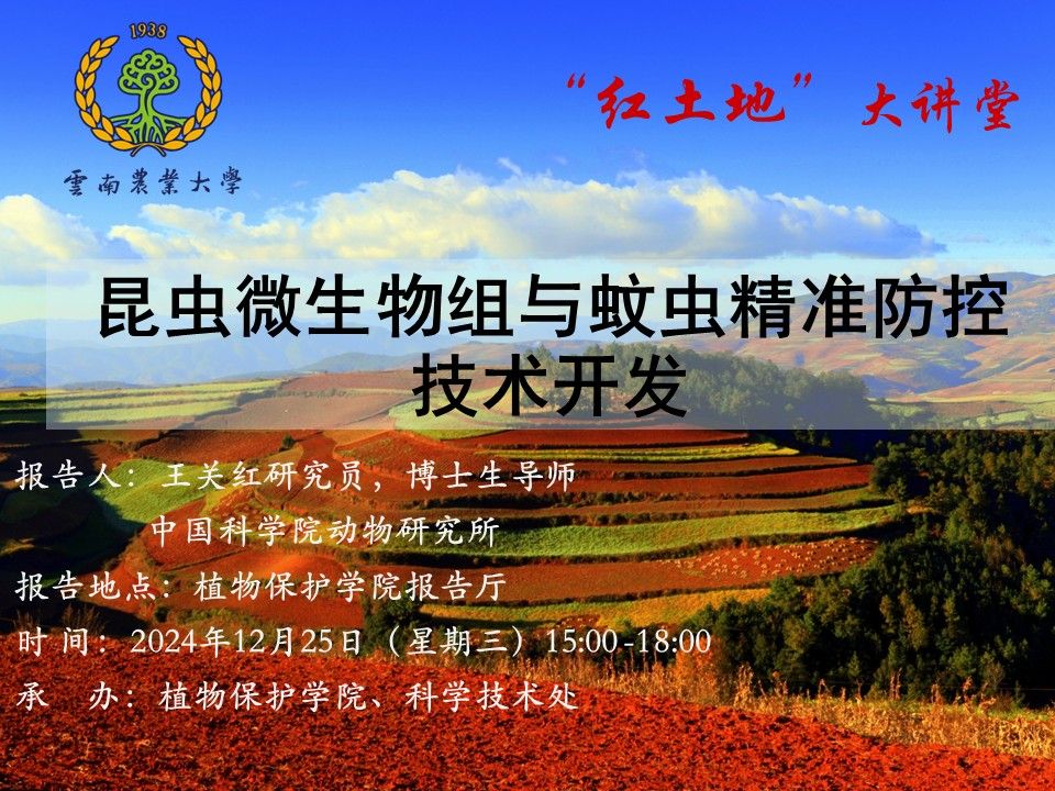 12月25日“红土地”大讲堂:昆虫微生物组与蚊虫精准防控技术开发