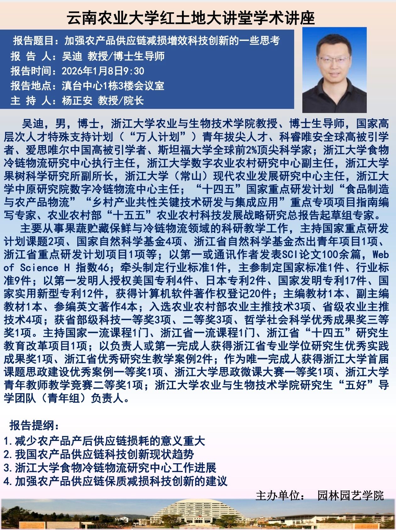 1月8日“红土地”大讲堂:加强农产品供应链减损增效科技创新的一些思考-凯发真人
