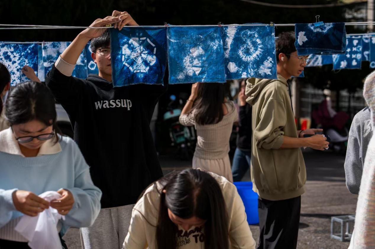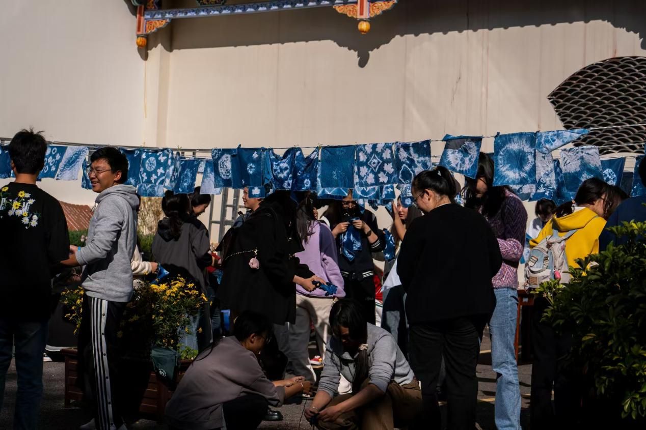 本次系列活动设置了扎染及农耕文化展、旧物扎染换新貌、扎染大赛、扎染知识问答等内容。活动现场热闹非凡,在温暖的阳光和欢声笑语中,云南民族农耕文化科普站的同学们化身传统技艺的传承者,热情地向参加活动的同学传授扎染技法。随后,同学们纷纷拿起布料和染料,亲自动手体验扎染的魅力。在扎染过程中,同学们大胆创新,通过折叠、捆绑、缝制等,创造出形态各异、色彩斑斓的扎染作品。