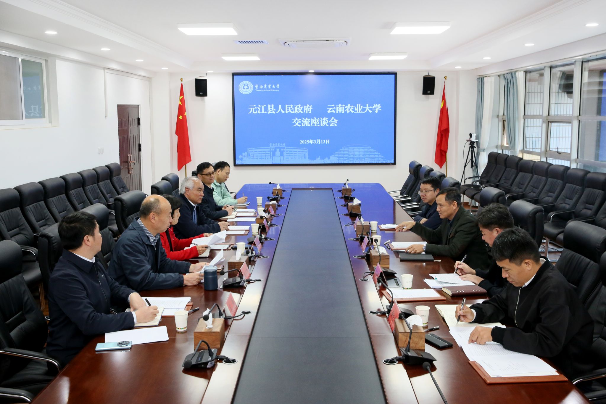 学校副校长赵正雄,盛军教授,元江县委副书记杨波,学校及元江县相关部门负责人参加座谈。