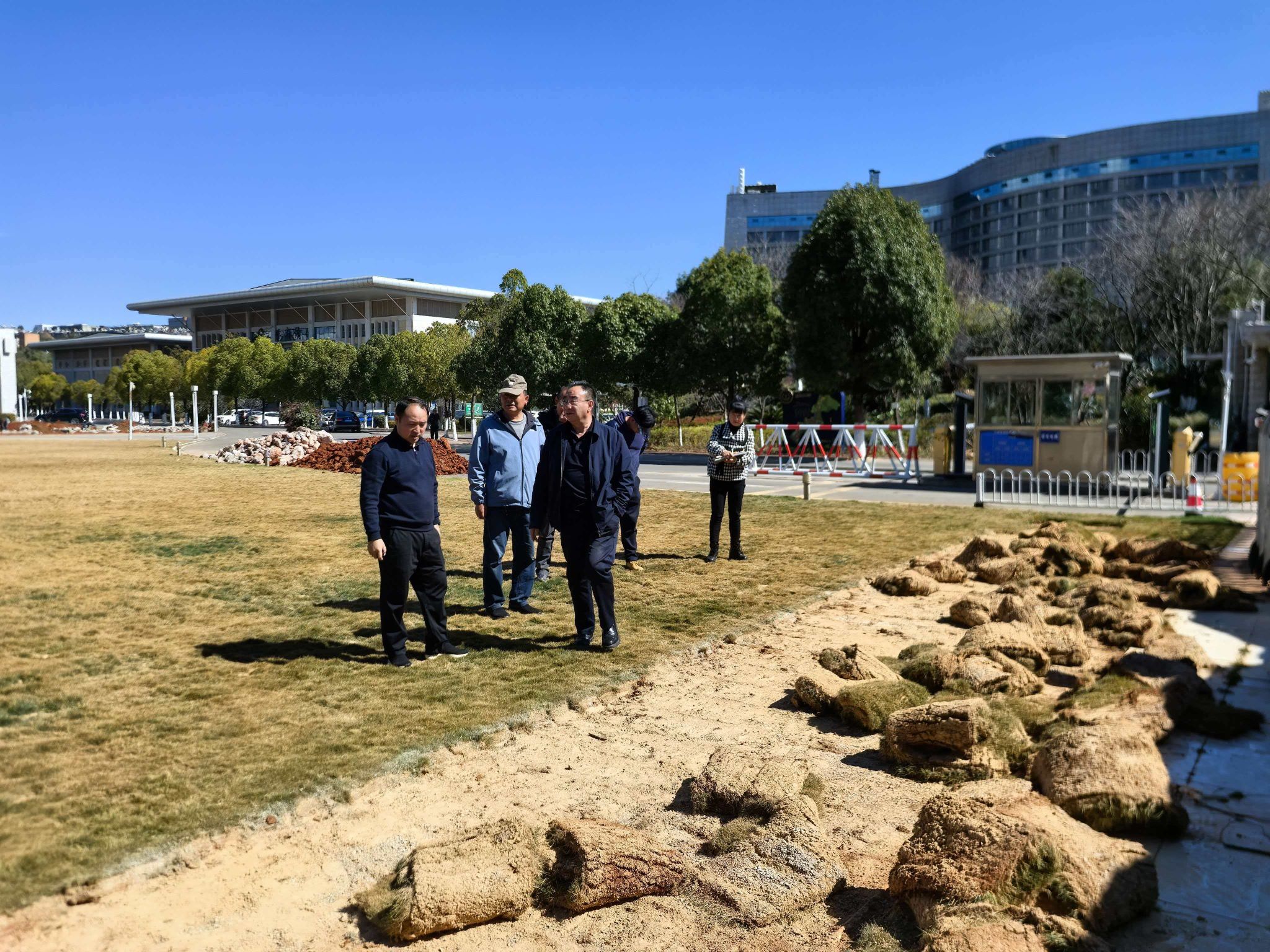 王卫斌一行沿着施工区域逐步查看,详细询问当前施工进度、苗木筹备、安全保障等情况,重点关注绿植栽种细节,针对现场施工中的关键问题逐一提出专业指导建议和要求。王卫斌着重强调,施工班组要严格遵守安全施工各项规范,强化现场安全管理,全面排查施工过程中的各类安全隐患,切实筑牢假期施工安全防线,确保项目高质量、高效率推进;项目各参建方要统筹加紧施工,抢抓苗木栽植时令,确保移栽和新植苗木的成活率。同时,王卫斌还代表学校向春节临近还在辛勤工作的施工方、监理方和学校现场代表表示亲切的慰问。