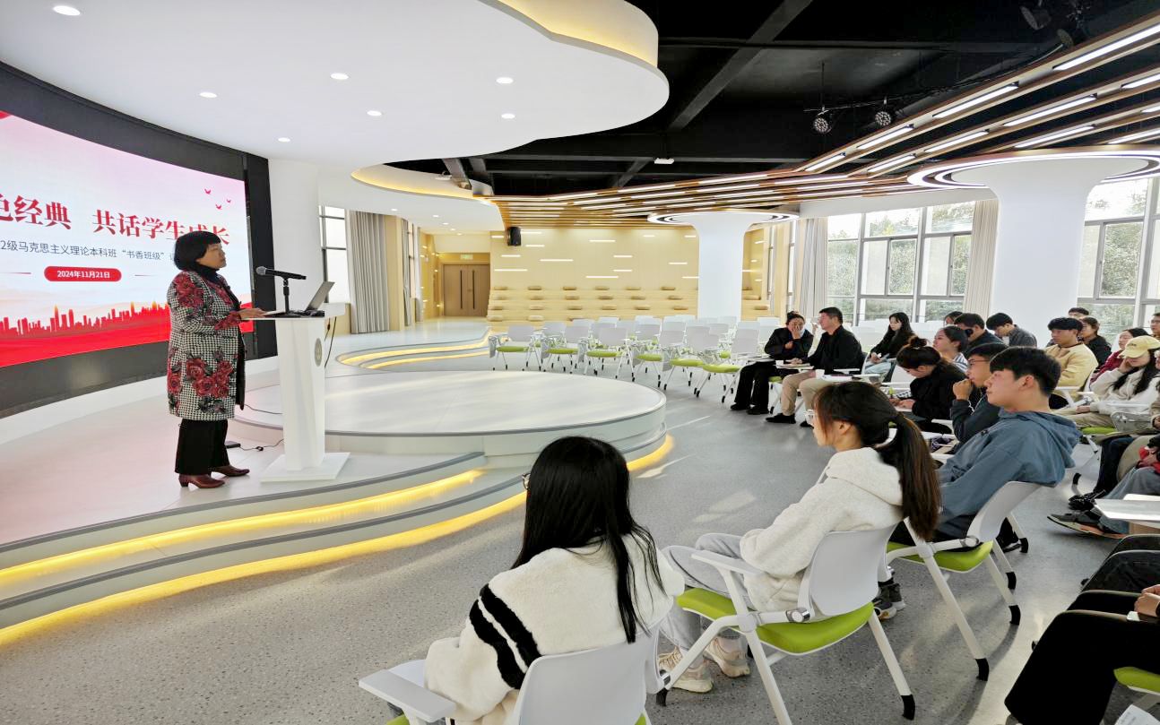 本站消息 11月21日下午,马克思主义学院2022级马克思主义理论本科班“书香班级”读书分享会在学生社区共享交流厅举行,此次分享会的主题是“品味红色经典,共话学生成长”。学校党委书记、2022级马克思主义理论本科班第一班主任黎素梅,马克思主义学院领导班子成员参加读书会。