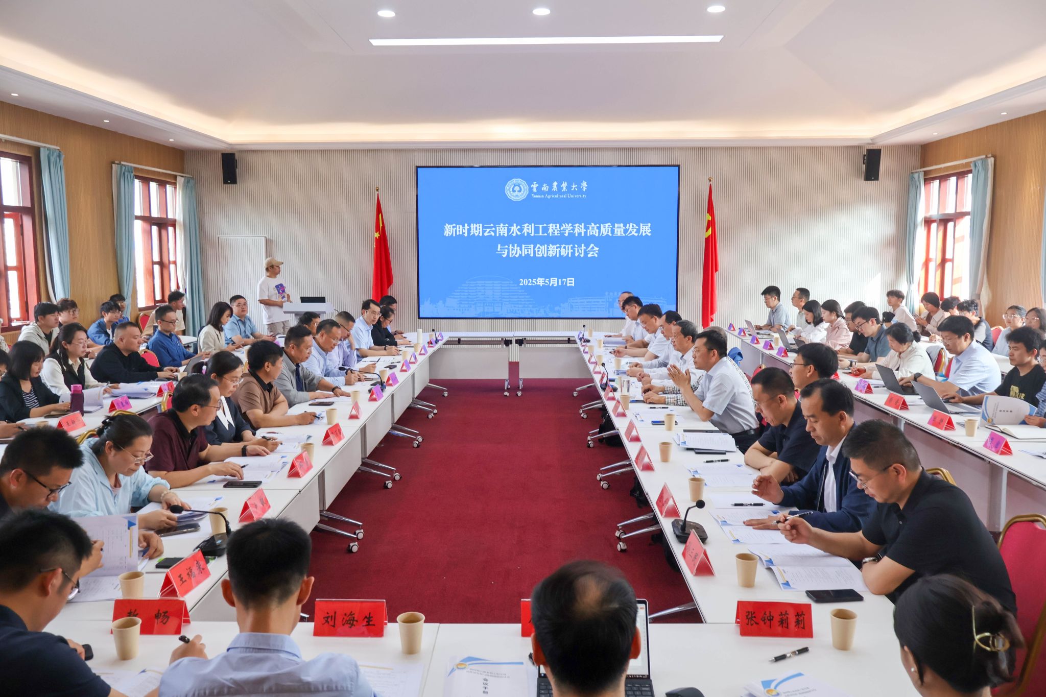 李永和校长致欢迎辞,指出水利学科在云南省"兴水润滇"中有重要作用,要通过学术协同创新积极为高原特色农业发展服务。水利学院李靖院长系统汇报了学院在学科建设、人才引育、科研平台等方面的成果。