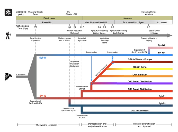 该研究成果提出阐释了几个重要观点:1、论证栽培葡萄起源的时间大约在距今1.1万年前,远比此前人类认知的起源时间要早,表明葡萄是最早驯化的水果,为研究作物起源驯化、葡萄栽培考古学研究提供了重要线索;2、揭示栽培葡萄驯化中心为两个,为双起源中心模式,纠正了此前的单起源中心理论,是葡萄研究的重要里程碑结果;3、证明酿酒葡萄和鲜食葡萄在不同区域同时起源,并且起源初期遗传背景就具有重大的差异,彻底解决了学术界对鲜食葡萄和酿酒葡萄起源长达数百年的争议;4、构建几乎覆盖所有栽培葡萄遗传资源高精度亲缘关系谱系图,可以实现葡萄品种的定向育种和设计育种;5、发现了大量的葡萄人工驯化形状控制基因,特别是找到了酿酒葡萄和鲜食葡萄人工驯化的差异基因,为葡萄功能基因组学研究和育种提供素材;6、在此研究基础上,结合人类活动、历史气候变迁等因素,绘制了葡萄起源和人工驯化、改良的全景图。