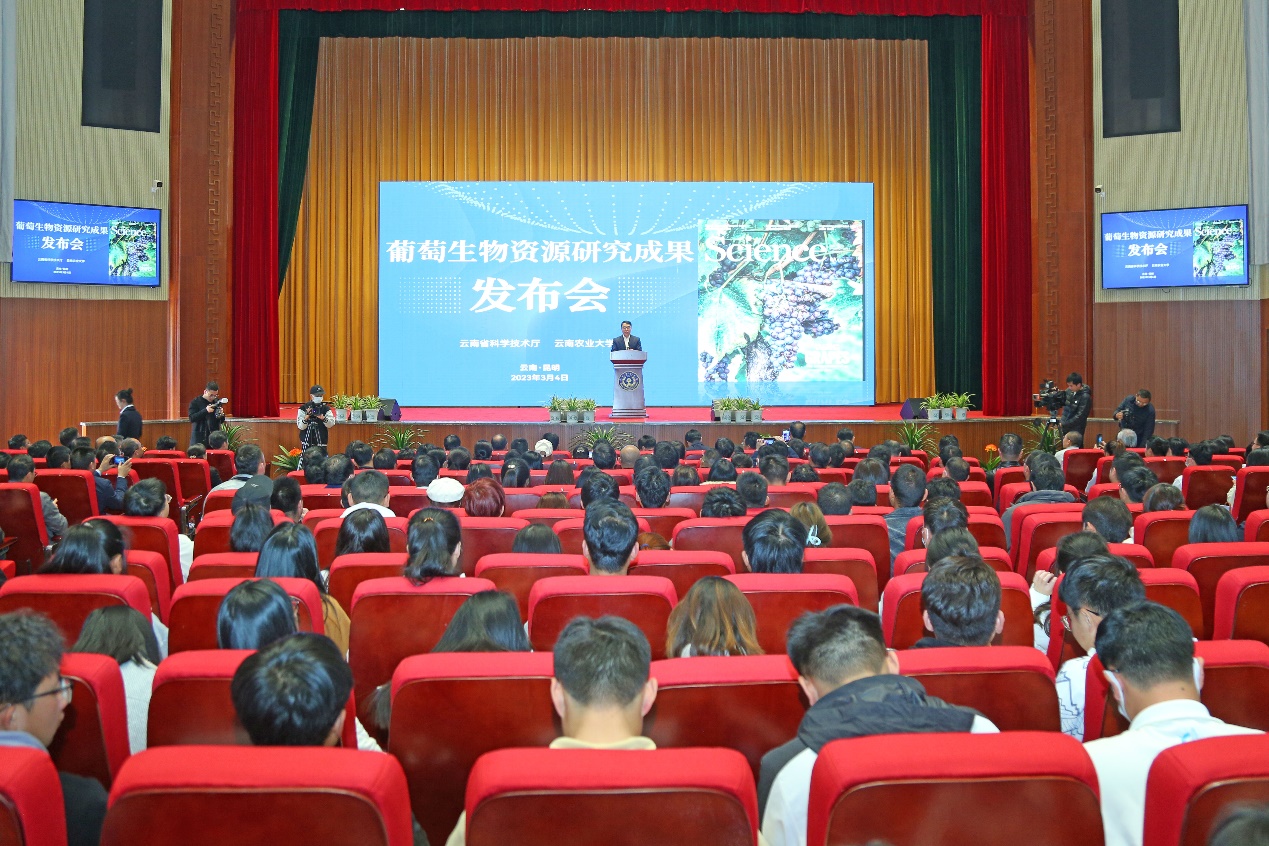 2023年3月4日,云南农业大学葡萄生物资源研究成果发布会在昆明召开。云南省教育厅、省科技厅、省农业农村厅、省科协、省农科院、省科学技术院、部分在昆高校领导出席发布会,云南农业大学部分师生及企业、校友代表共700余人参会。