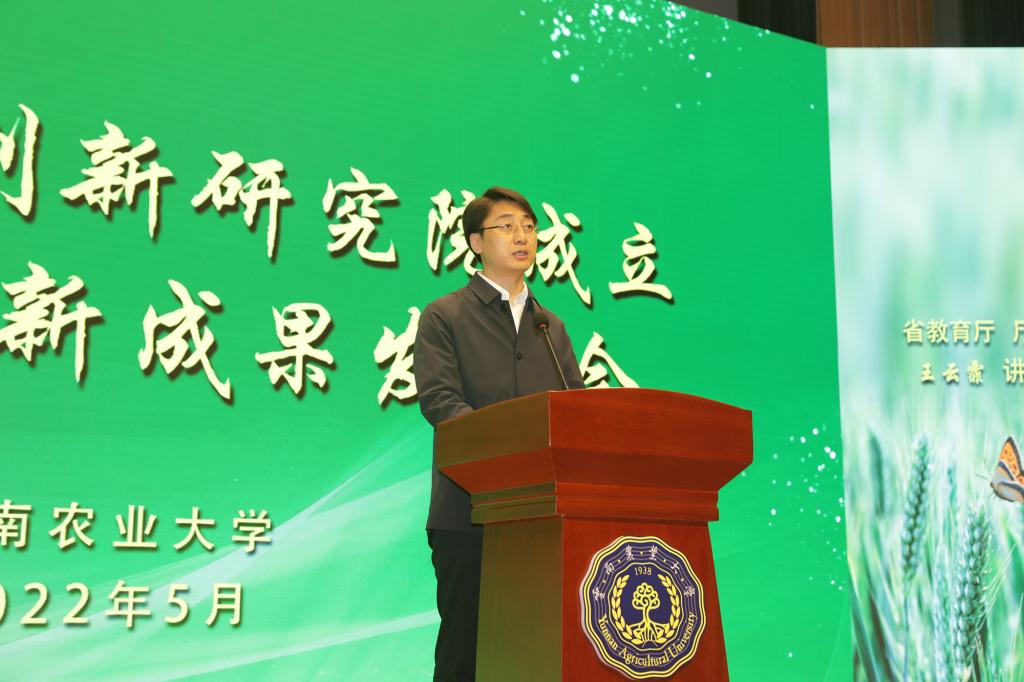 省教育厅厅长王云霏、省农业农村厅厅长谢晖、省科技厅巡视员王立新分别作了会议讲话,表示将一如既往鼓励支持云南农业大学,希望云南种业创新研究院能依托云南农业大学产、学、研联动优势,围绕种子产业链关键核心技术,搭建公共平台,汇集科研力量,张榜联合攻关,激发创新活力,全面加强种业科技原始创新,在云南粮食安全和产业发展方面作出农业高等院校的贡献,有力助推种业发展迈上新台阶。