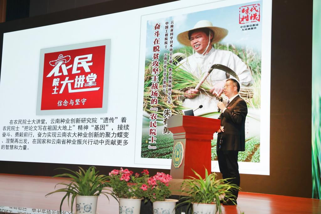 朱有勇介绍了几十年来学校在种业创新研究上的艰辛探索和取得的辉煌成绩,他表示,有了好的“种子”,更要在“耕种”上下功夫,要探索更加科学高效的种植方式,真正把论文写在祖国大地上。